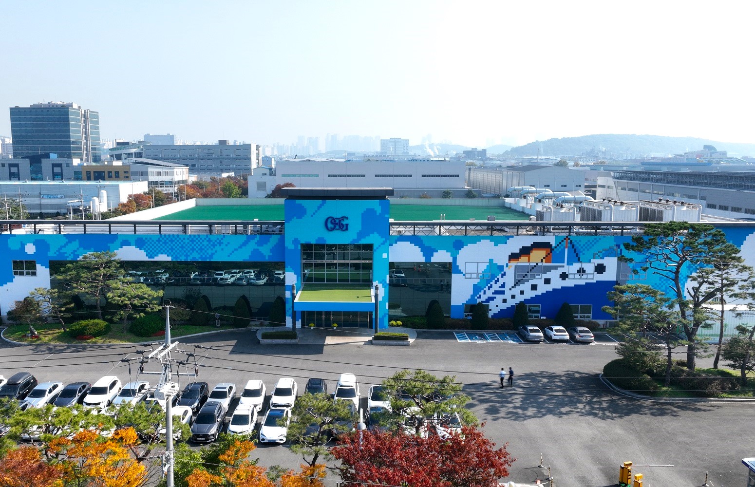 픽셀 아트로 꾸며진 대구 성서산업단지의 한국OSG 공장